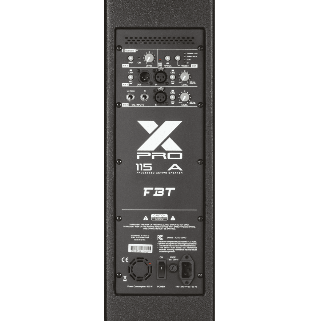 The bi-amplified FBT XLITE 15Aactive speaker feature a 800W low frequency amp and a 200W high frequency amp.