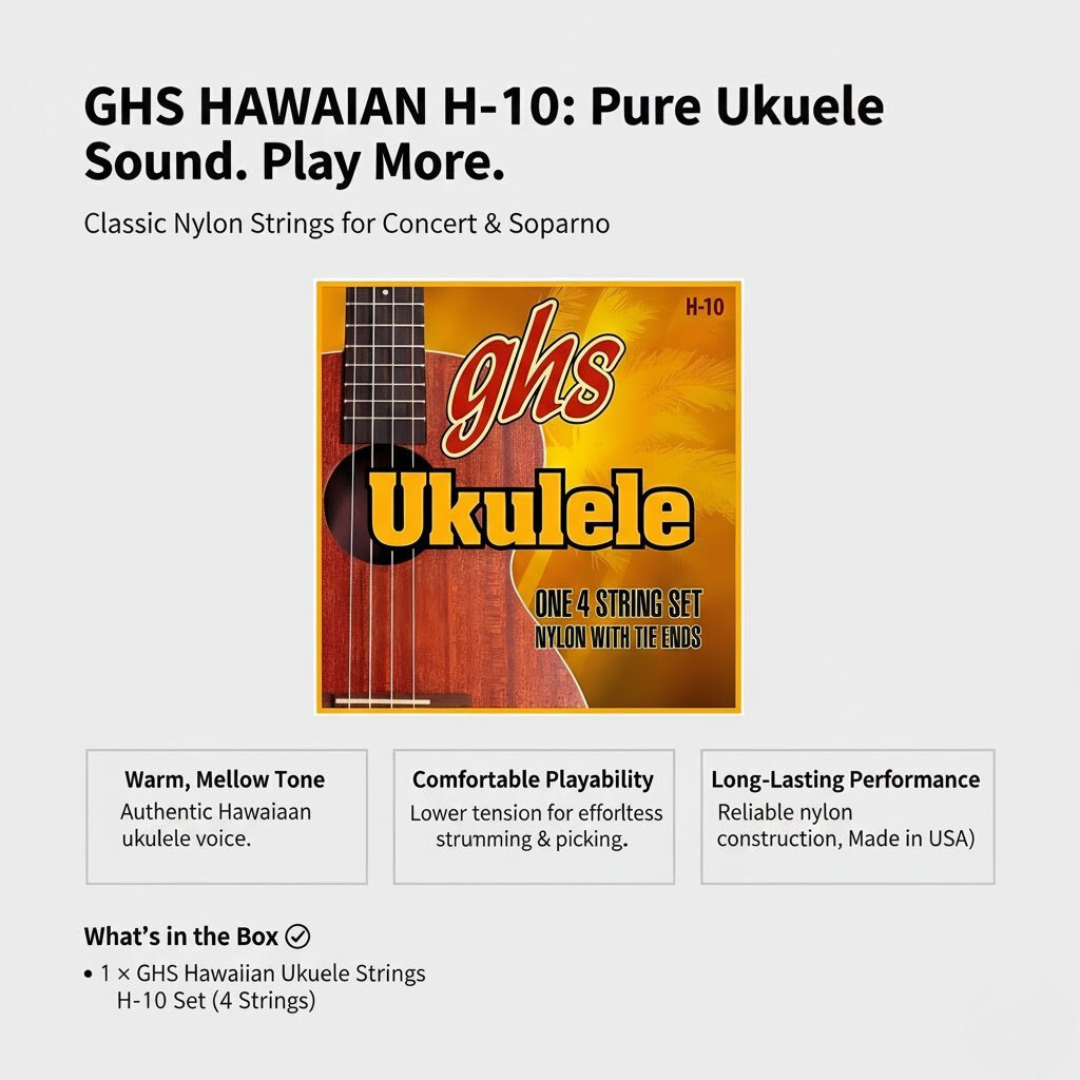 Purpose-built to elevate playability and tonal warmth, the GHS Hawaiian H-10 set brings a smooth, expressive voice to both concert and soprano ukuleles.
