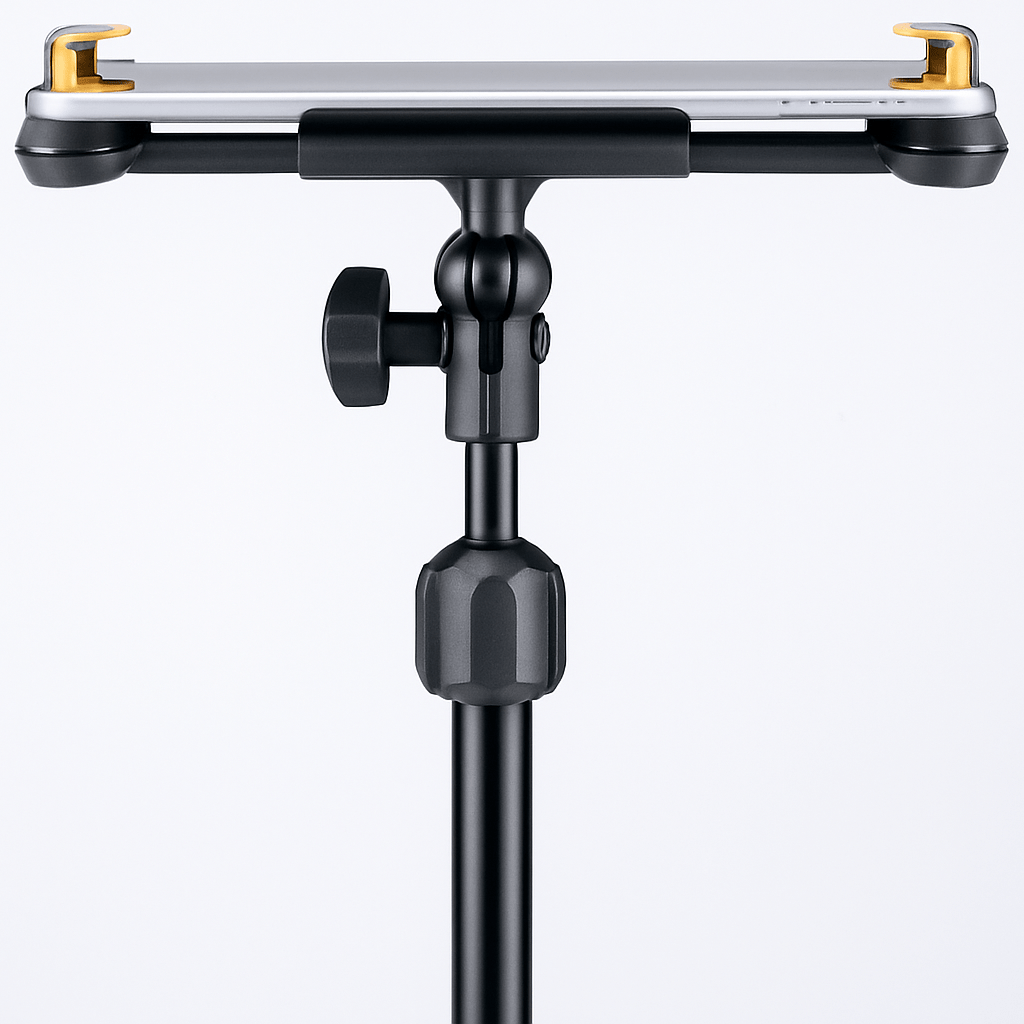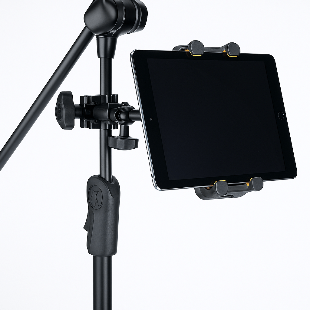 • Attaches to a desk, round and square tubes like keyboard stands, microphone stands or music stands.