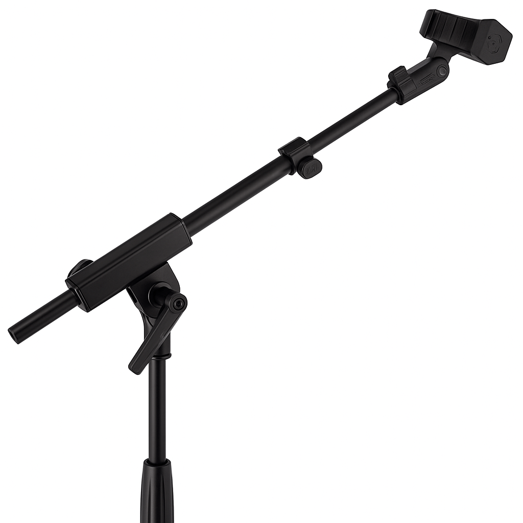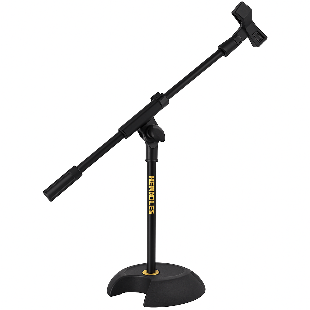 The HERCULES Low Profile Mic Stand MS120B with telescoping boom is ideal for drum and amplifier applications.