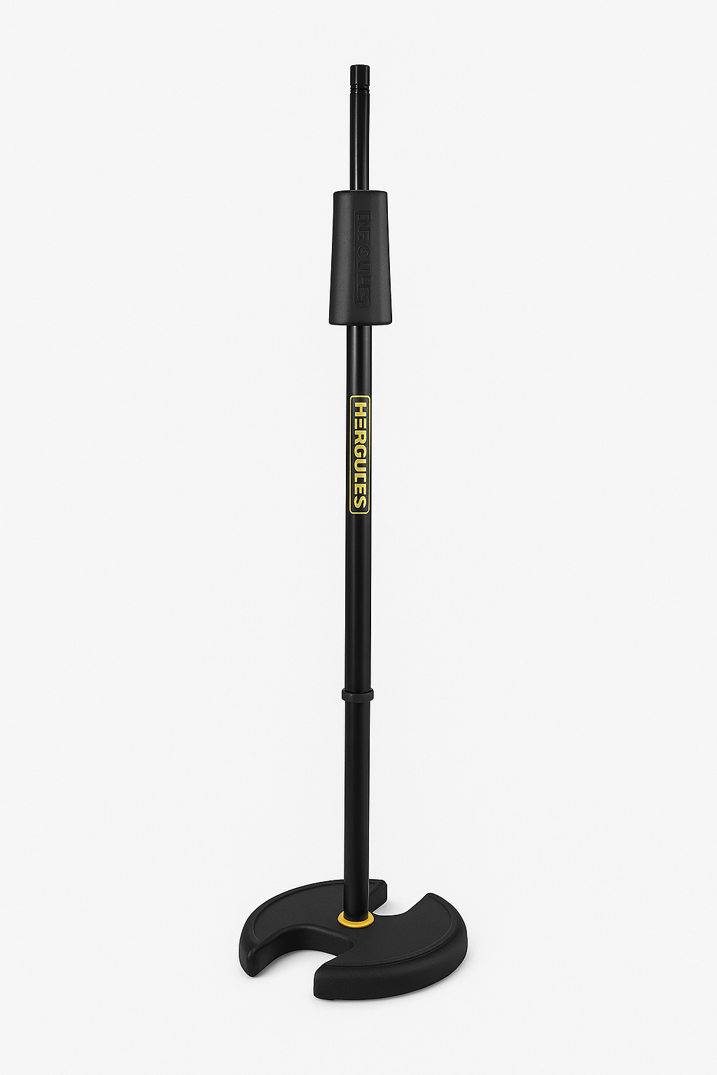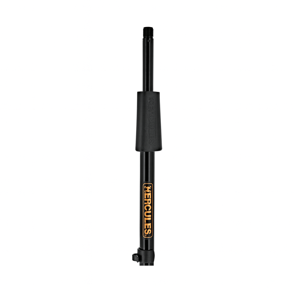 The HERCULES Stage Series Mic Stand MS202B features the Quick Turn Clutch, and the weighted HERCULES "H" Base
