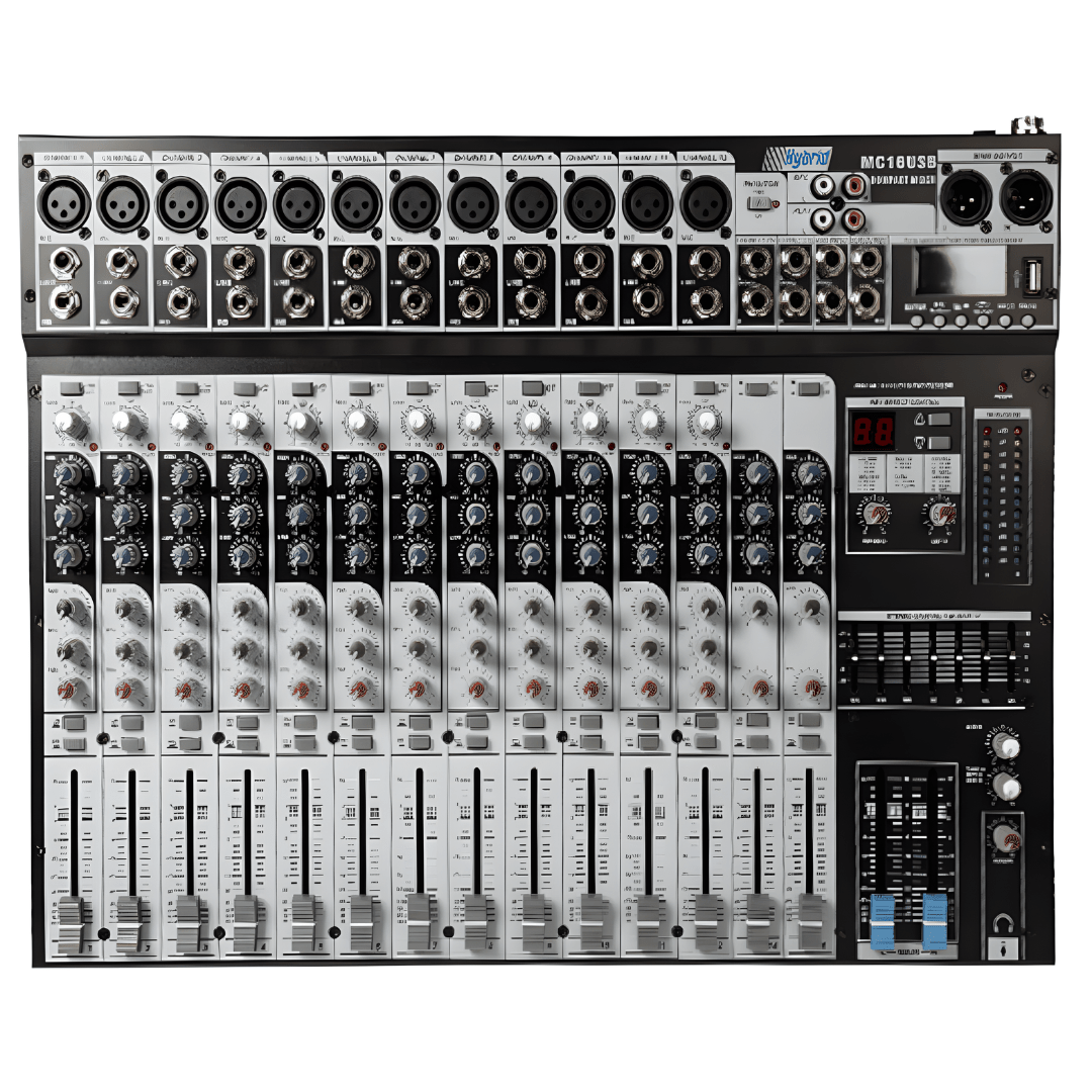 The Hybrid MC16USB is a compact, 12 + 2 channel, medium format, analogue live mixer.