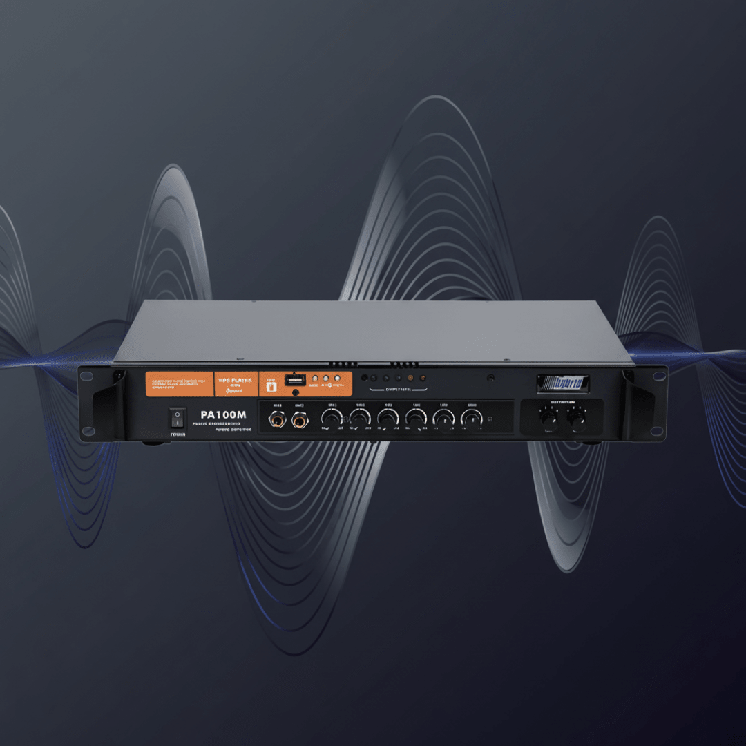 The Hybrid PA100M is an entry level, well priced, mid format public address amplifier. With features such as an integrated MP3 with Bluetooth media player, a two band equaliser and two microphone inputs, the PA100M has all that is needed to run a mid sized 100V or low impedance installation.