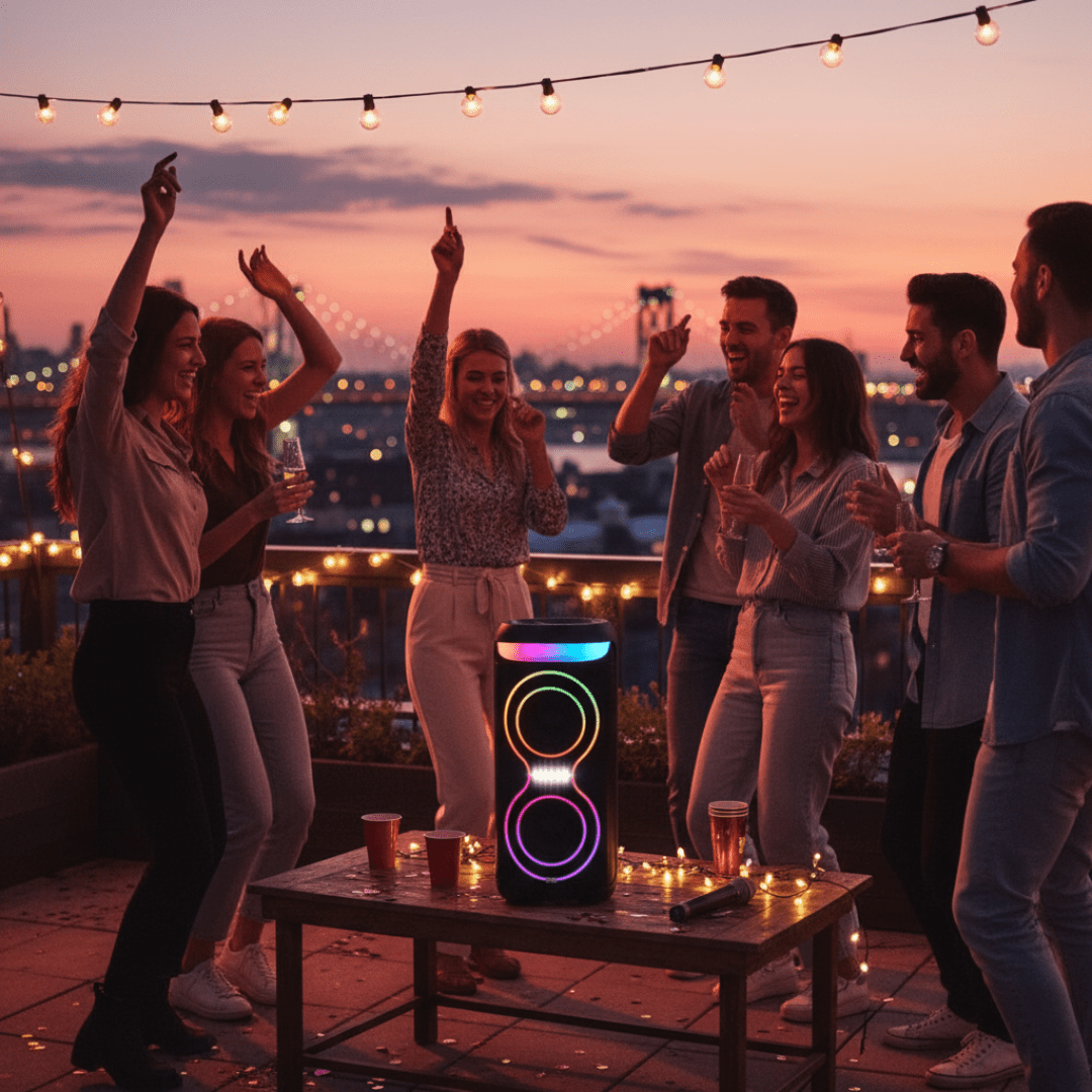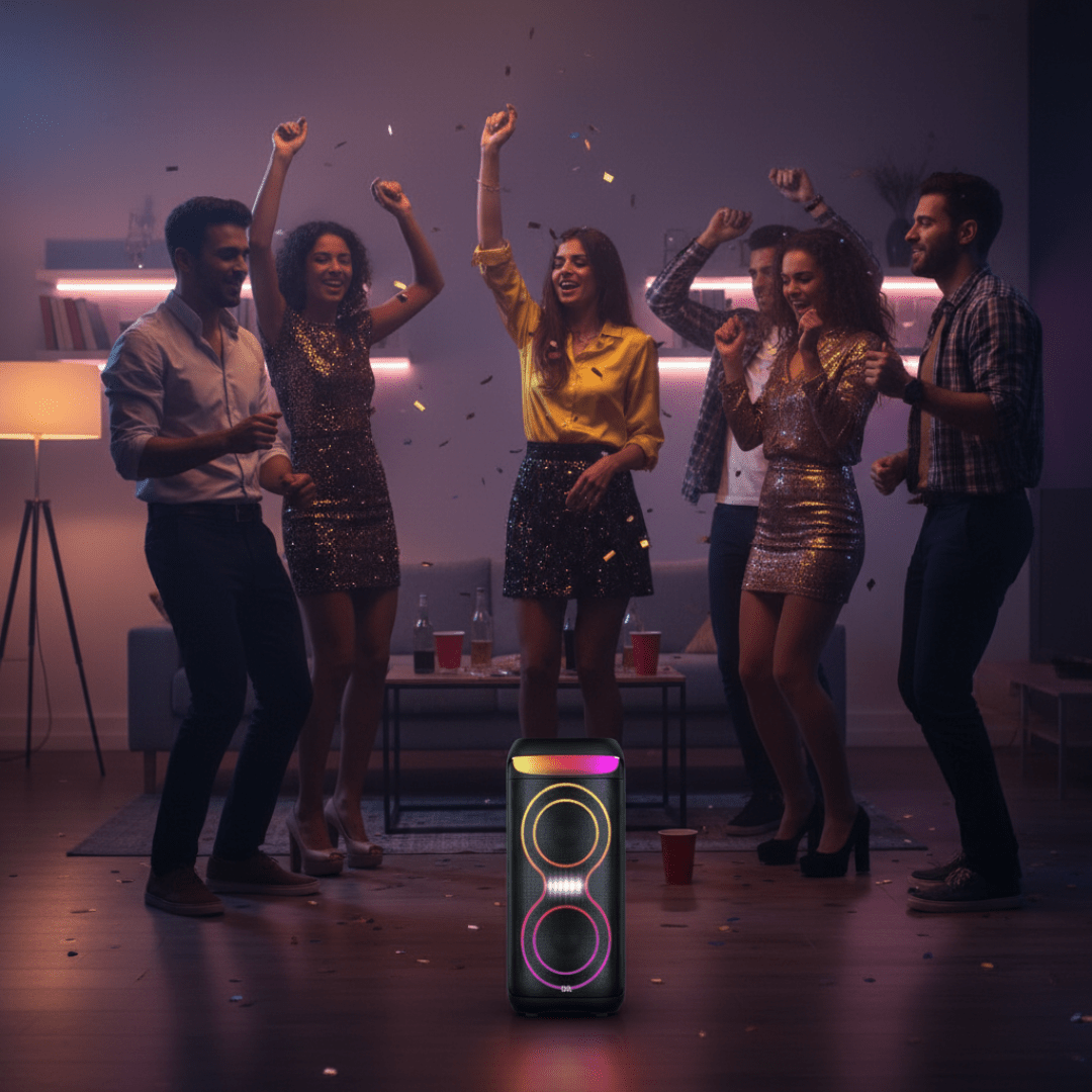 Multicolor Music-Sensitive LED Lights: Set the mood and create an unforgettable atmosphere with the speaker's multicolor LED lights. These vibrant lights sync to the beat of the music, adding a dynamic visual element to your party.