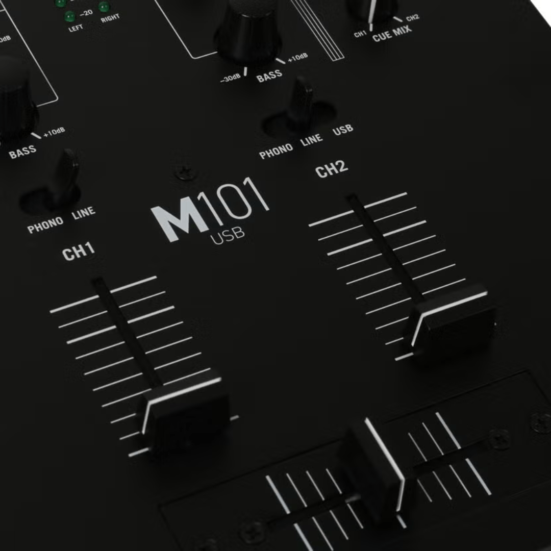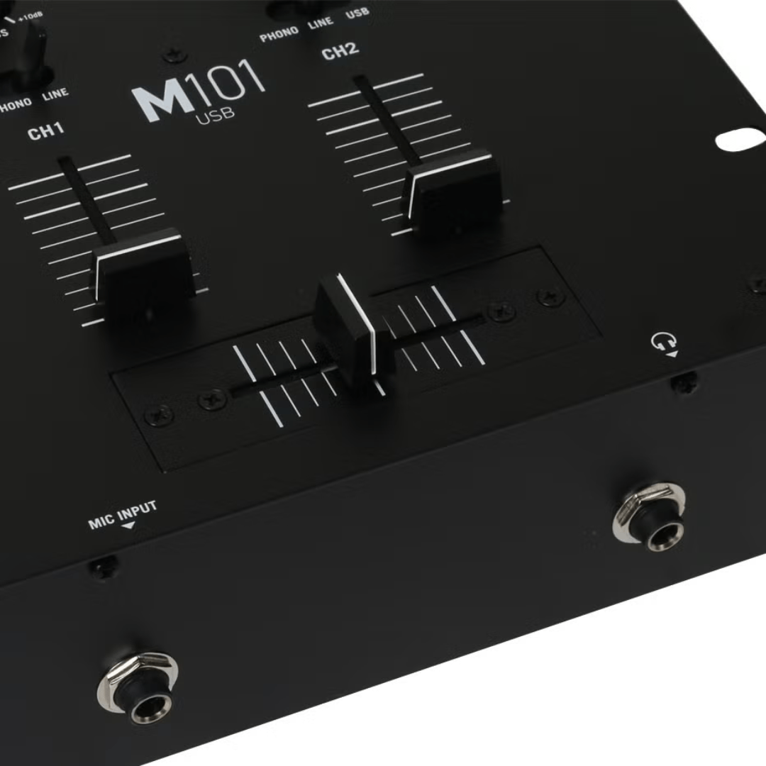 MIX YOUR MUSIC YOUR WAY Beginners and seasoned DJs alike who want a durable USB-equipped two-channel solution will find M101USB a perfect fit. M101USB builds on the two-channel M101 mixer with the addition of an easy-to-use USB audio interface for DJs who want the option of working with their computer as well as traditional analog I/O.