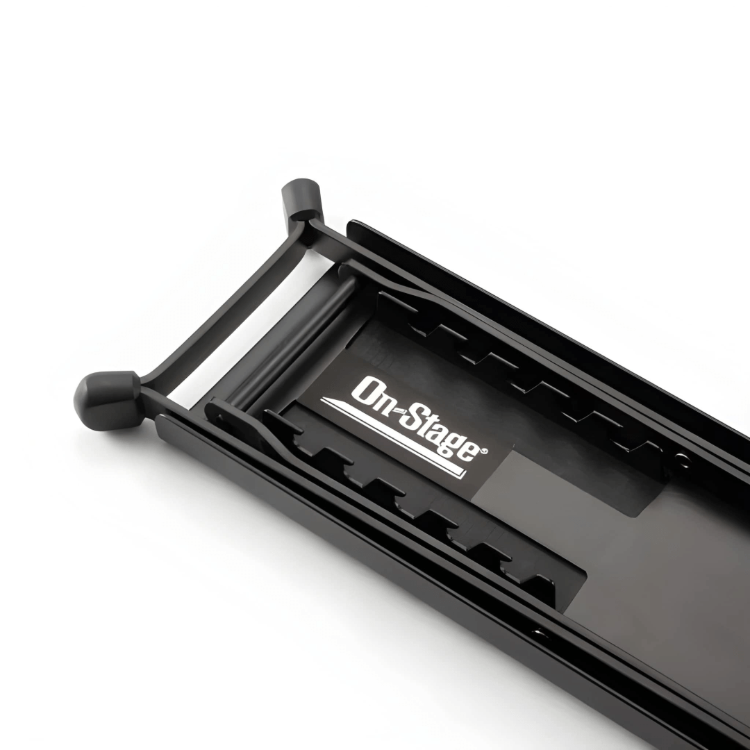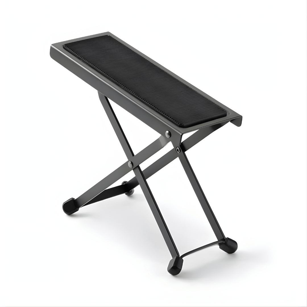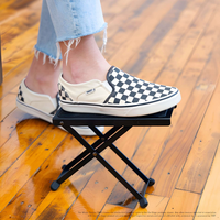 Our FS7850B Foot Stool enables guitarists to dial in an ergonomic playing position with its variable height. Rubber end caps on the base and a nonslip rubber foot pad provide exceptional stability and comfort. It conveniently folds flat for easy storage and transportation.