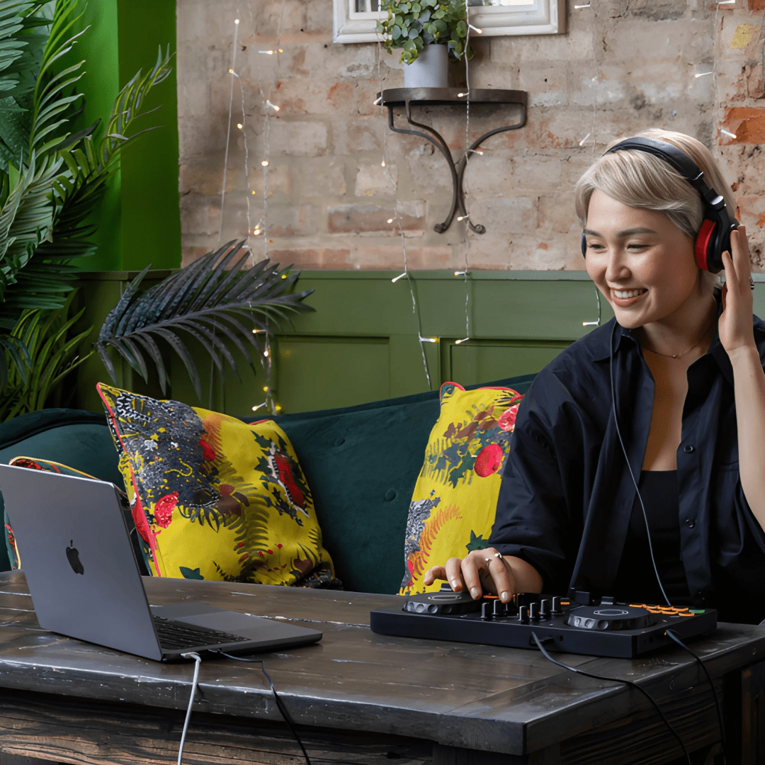 The DDJ-FLX2 works with a number of DJ applications, including rekordbox and djay – popular choices among both beginners and professionals. After installing your preferred app on your mobile device, you can connect to the controller and start DJing right away. If you want to challenge yourself to learn more advanced techniques, you can use DJ software, such as Serato DJ Lite, on your PC/Mac.