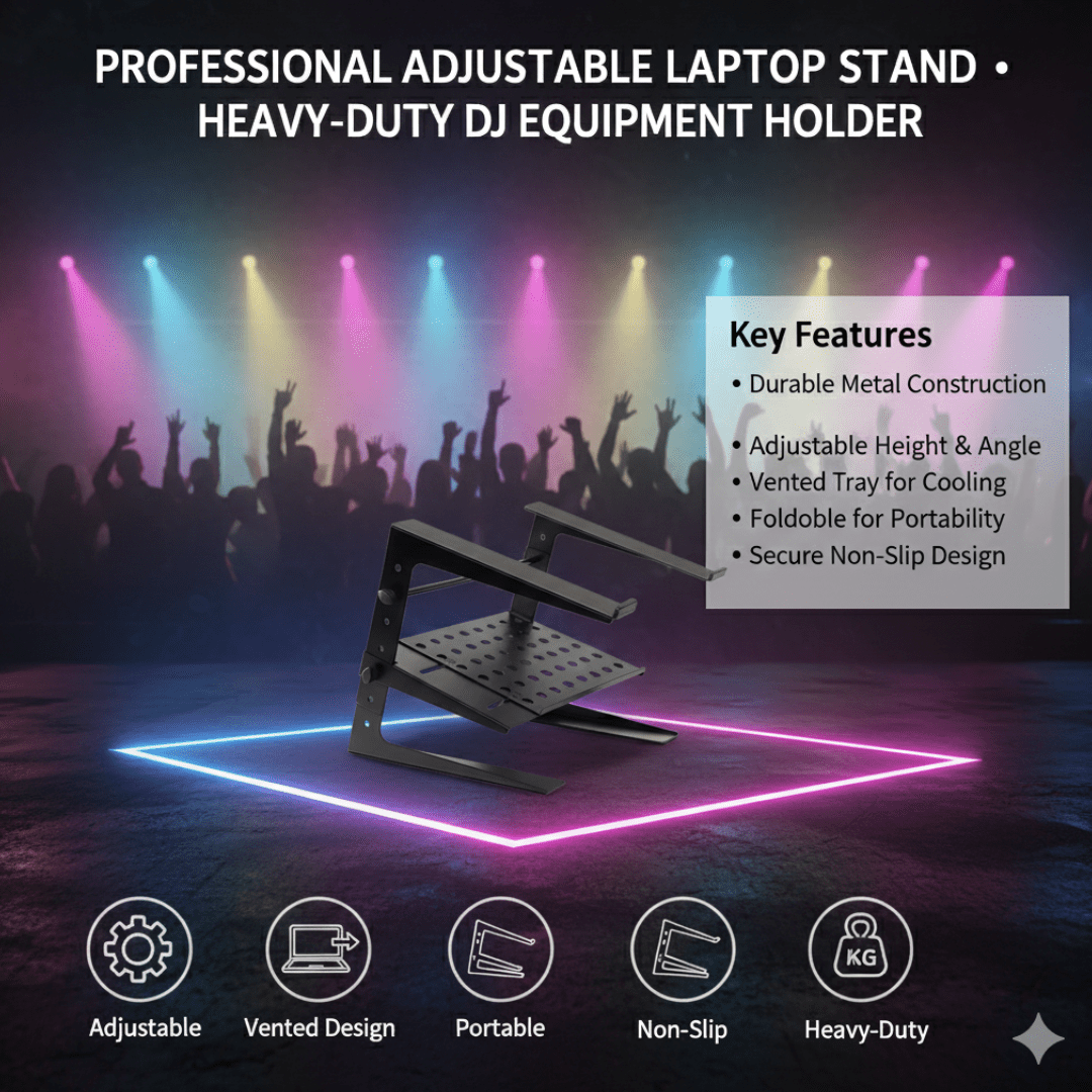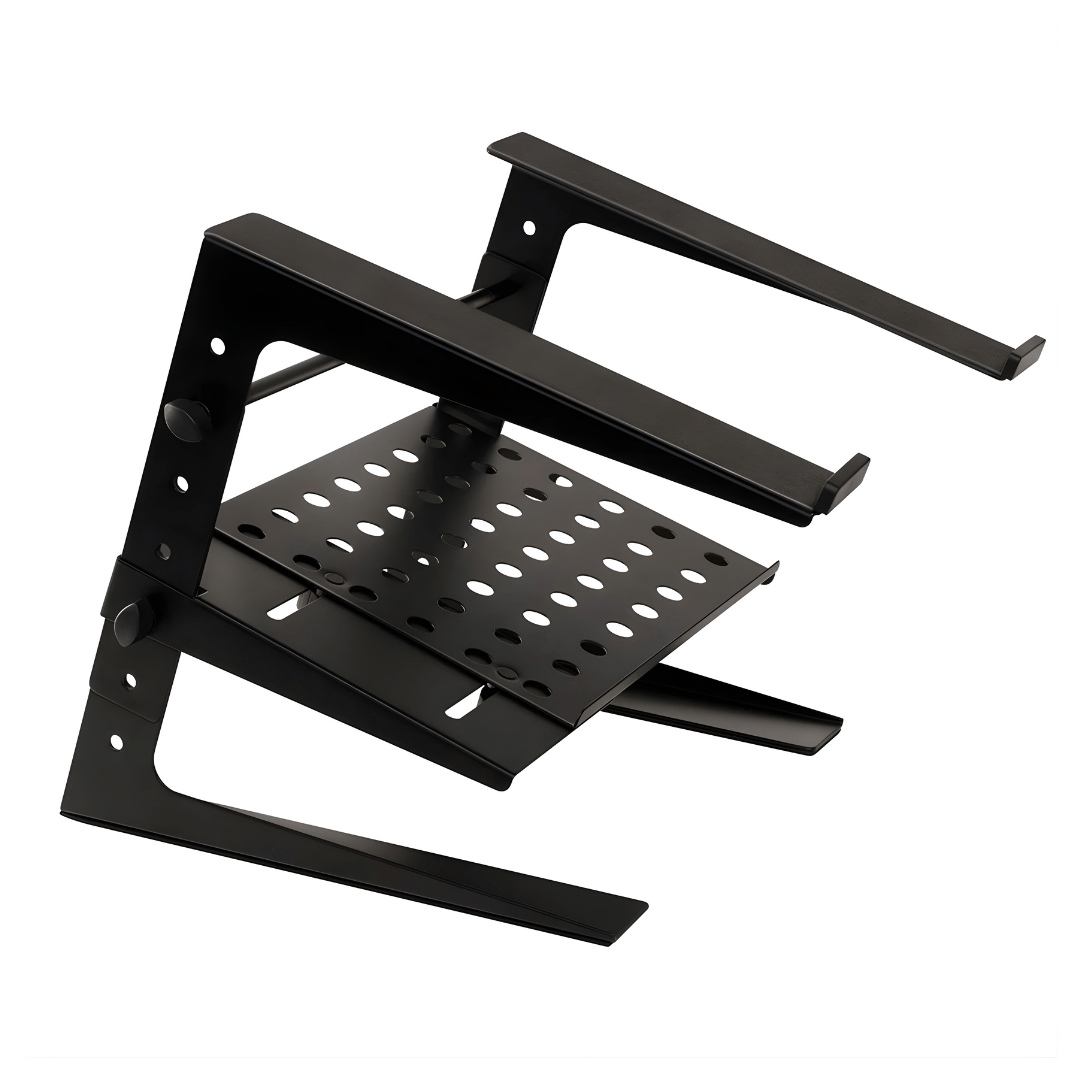 Dual-Tier Design: The PowerWorks JS-LPT200 features two platforms, allowing you to organize multiple devices such as laptops, DJ controllers, or mixers. This design maximizes workspace, ensuring your gear is conveniently accessible.
