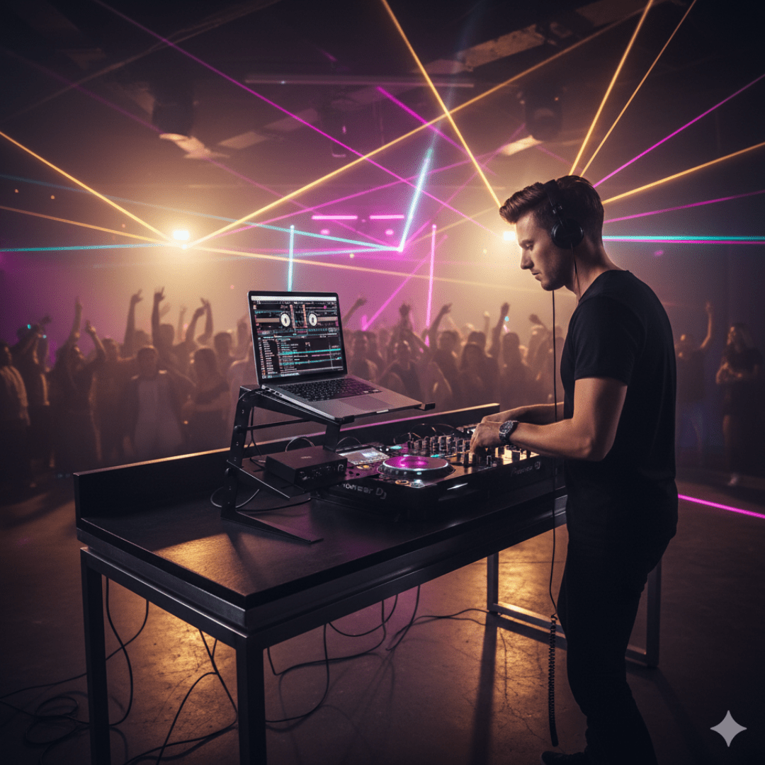 The PowerWorks JS-LPT200 is a dual-tier laptop/DJ stand designed for professional use.