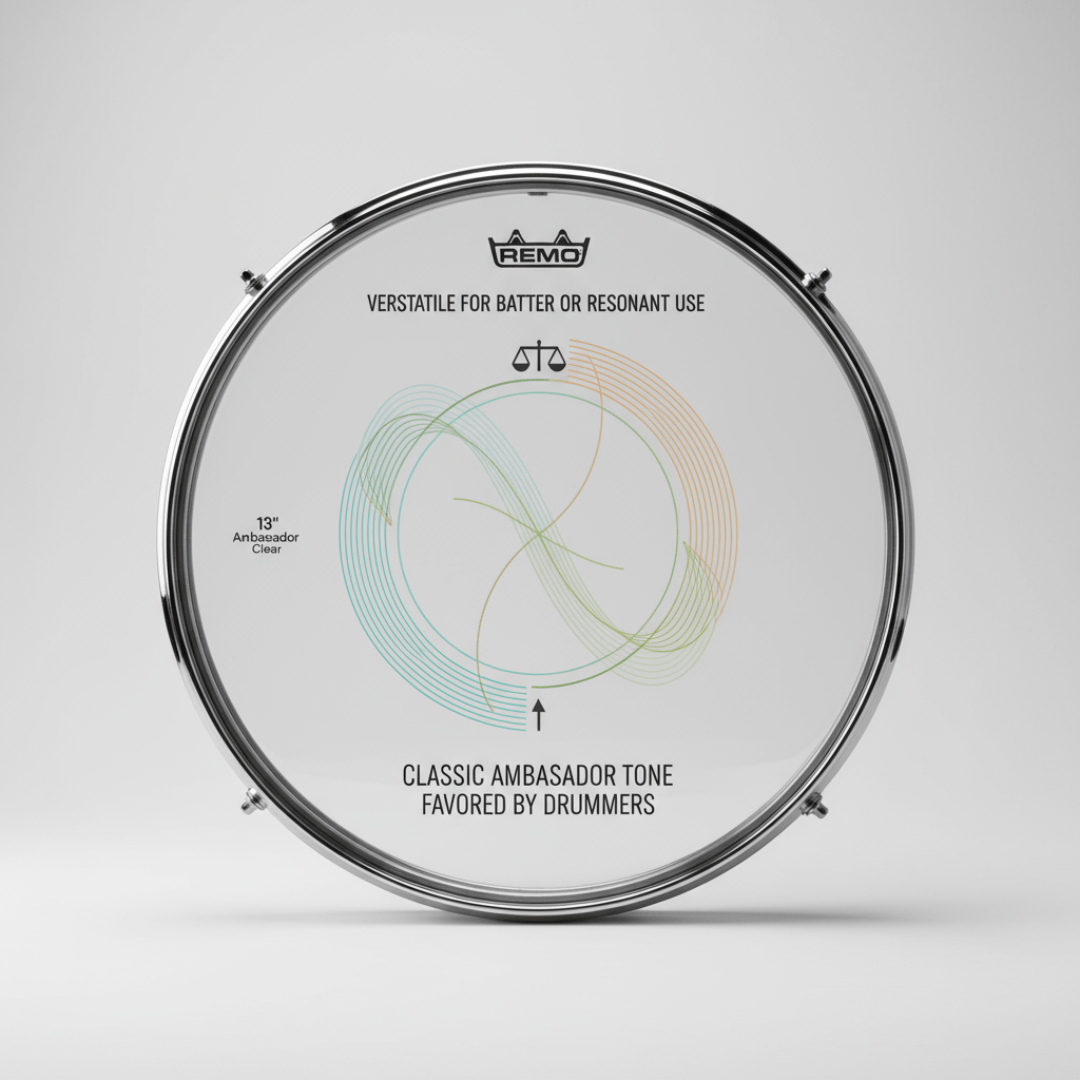 • Series: Part of the Ambassador Clear line, known for classic Remo sound