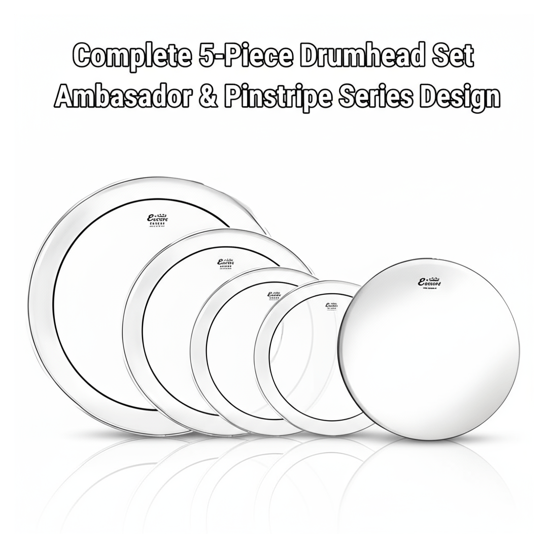 Remo EN-BA12-PP Encore Ambassador & Pinstripe Tom Drumheads 5 Pack